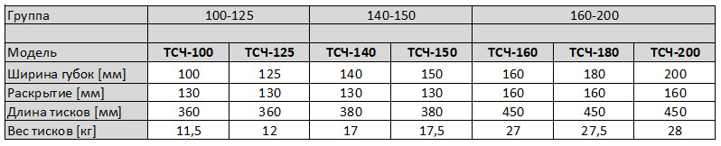 У тисков большой серии ТСЧ160, ТСЧ180, и ТСЧ200 оно составляет 160 мм, а у тисков ТСЧ100, ТСЧ125, ТСЧ140, ТСЧ150 - 130 мм.