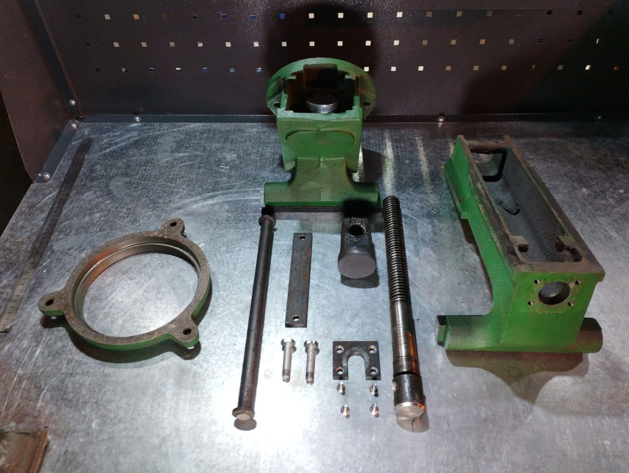На фото показаны детали и узлы разобранных слесарных тисков ТСЧ-200.