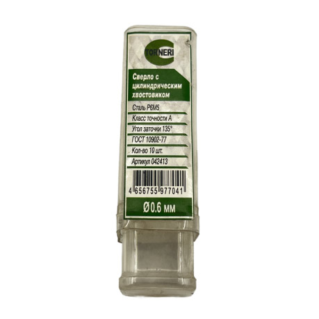Сверло с цилиндрическим хвостовиком ø 0.6 мм Р6М5 шлифованное А1 TORNERI.