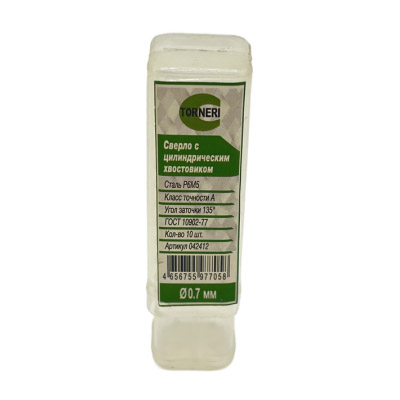 Сверло с цилиндрическим хвостовиком ø 0.7 мм Р6М5 шлифованное А1 TORNERI.