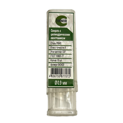 Сверло с цилиндрическим хвостовиком ø 0.9 мм Р6М5 шлифованное А1 TORNERI.
